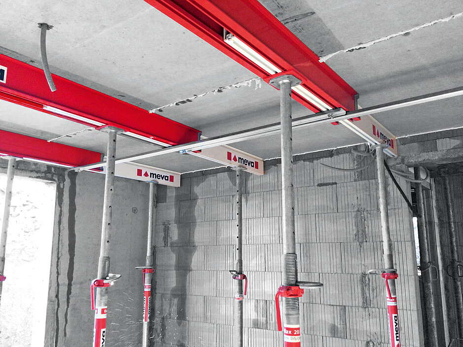 »VarioMax gibt systembedingt die Anzahl und Platzierung der Stützen vor. So brauchen wir zum Beispiel bei einer Jochlänge von über 8 m nur vier Stützen. Bei einem Jochabstand von 1,60 m müssen wir also nur sehr wenig Material herantragen, montieren, später heraustragen und reinigen. Manchmal benötigen wir nur die Hälfte der Stützen und Komponenten von früher. Wir können also viele Teile, die wir früher auf einer Baustelle benötigt haben, nun gleichzeitig in einem anderen Projekt nutzen«, erläutert Michael Weißinger.