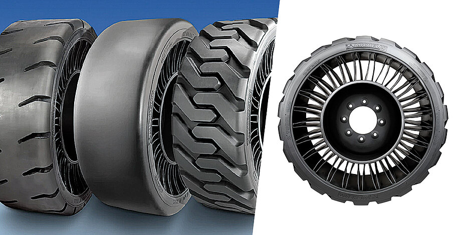 Als ein Beispiel für eine innovative Reifentechnologie gilt der Michelin X Tweel für Kompaktlader und leichte Baumaschinen. Dabei handelt es sich um eine luftlose Rad-Reifen-Kombination, die Reifen, Felge und Ventil komplett ersetzt. Der X Tweel ist laut Hersteller wartungsfrei und benötigt nach der Montage keine Luftdruckkontrolle mehr. Die besondere Konstruktion des Reifens soll Ausfallzeiten durch Reifenpannen im Vergleich zu herkömmlichen Luftreifen deutlich senken helfen.