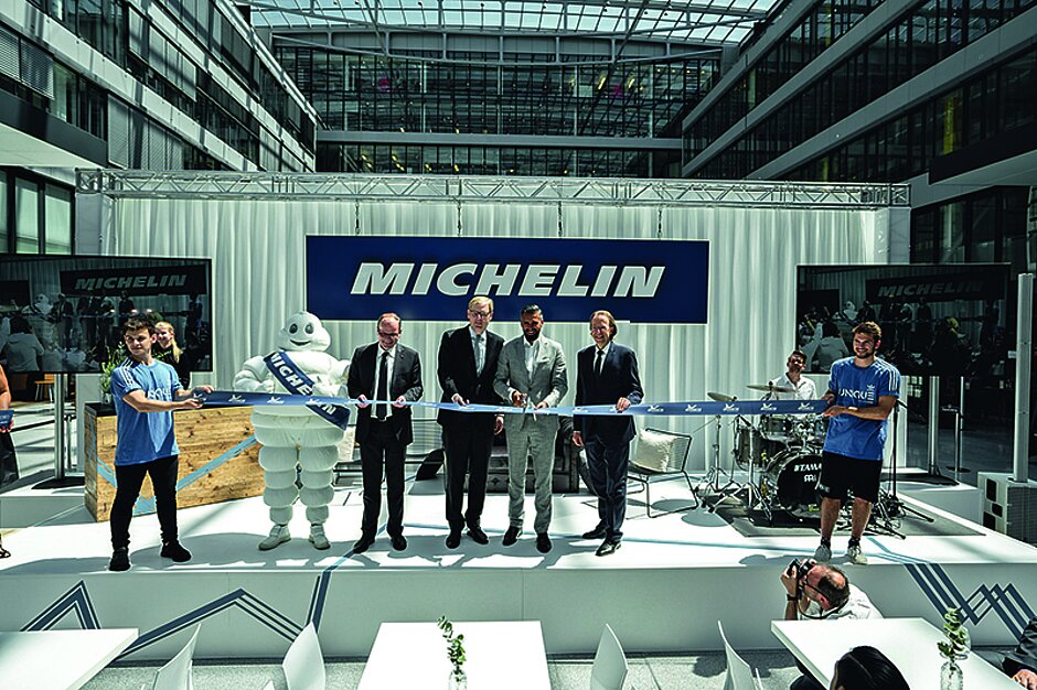 Geprägt von der globalen Philosophie der »New Work Cities«, hat Michelin rund 250 Mitarbeitern auf knapp 6 000 m² ein neu gestaltetes und modernes Arbeitsumfeld geschaffen. »Unsere Mitarbeiter erwartet eine neue Art des Miteinanders durch flexible und effiziente Arbeitsplatzlösungen«, erläutert Taneja das neue Raumkonzept. Das Stichwort heißt »activity-based working« mit mehr Austausch und einer lockeren, inspirierenden Atmosphäre. »Das Arbeitsumfeld im neuen Michelin Frankfurt Office soll unsere Mitarbeiter dazu inspirieren, alte Strukturen zu hinterfragen, bei Bedarf aufzubrechen, Silos abzubauen und neue Kommunikationswege zu gehen«, so Taneja weiter.