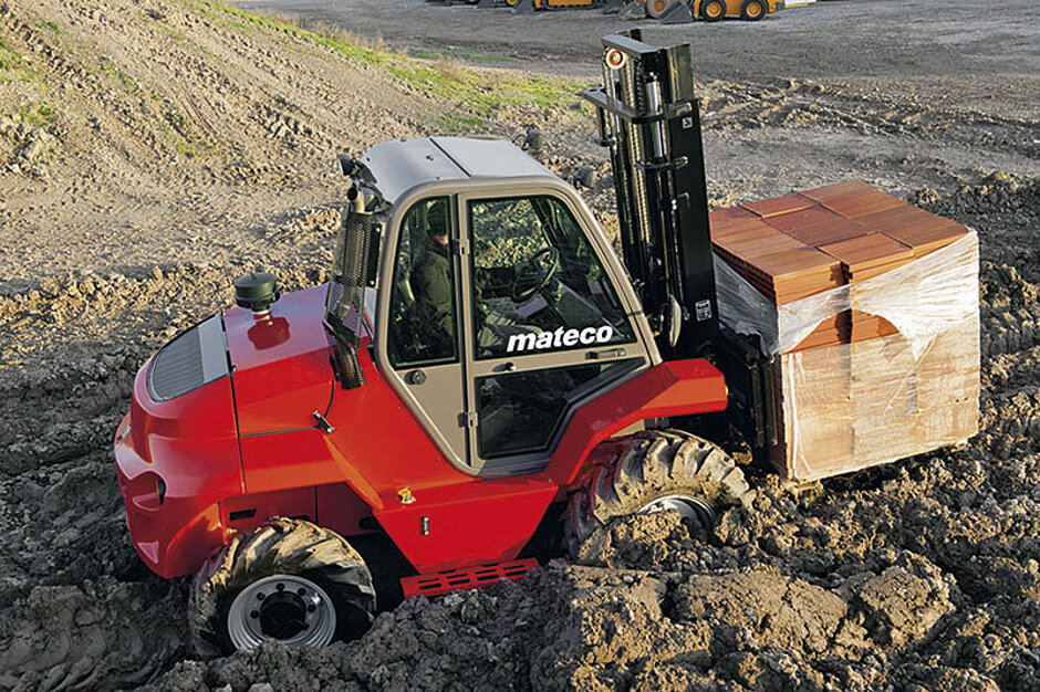 Auch bei den Geländestaplern bietet mateco zwei Baureihen: Den Geländestapler GSG 30 D 4x4 und den GSG 50 D 4x4. Ob bis zu 3 t oder 5 t schwer, ob bis zu 5 m oder 5,5 m hoch, selbst unter extremen Bodenbedingungen gelangen diese Maschinen überall hin, wo andere Stapler nicht hinkommen.