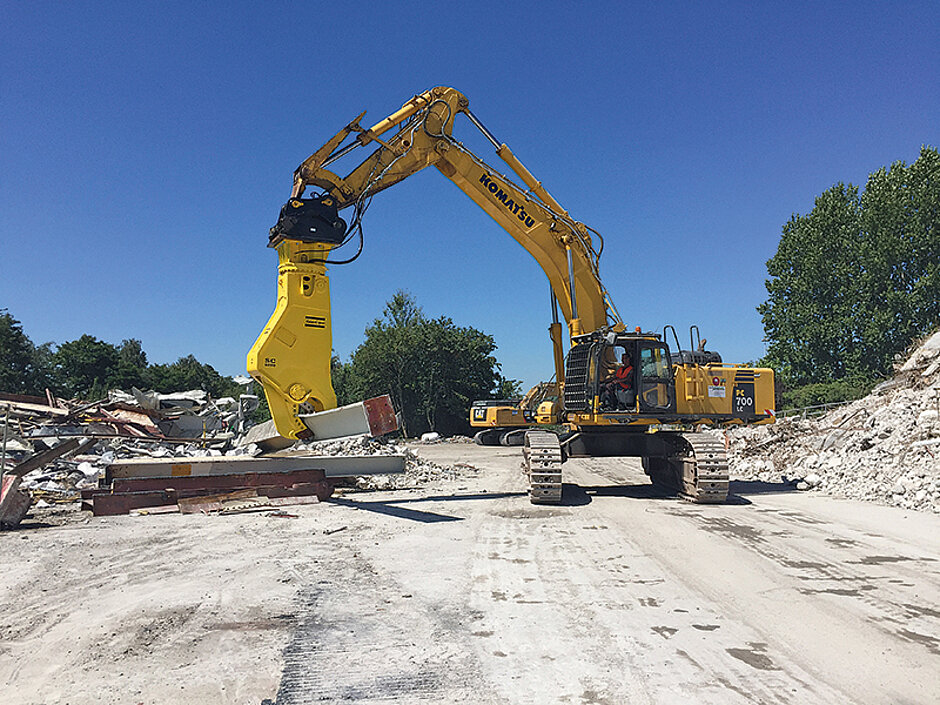 Die Abbruchzange CB 2500 bietet sich für den Rückbau von hartem und dickwandigem Beton an. Mit einer Backenöffnung von 1 100 mm und einem Gewicht von nur 2 580 kg hat die CB 2500 beim Schneiden von Trägern und Schwerbeton in großer Höhe leichtes Spiel. Sie entwickelt eine Brechkraft von 100 t und ist damit Grundmauern bis zu einer Stärke von 900 mm gewachsen.