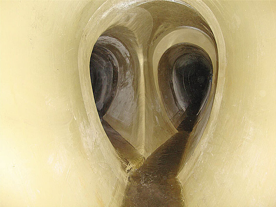 Trotz des strengen Winters stellten die Witterungsbedingungen für die Experten von Aarsleff keine große Hürde für die Sanierung dar. GFK-Profile von Hobas können auch bei niedrigen Temperaturen verlegt werden, Laminierarbeiten und die abschließende Ringraumverfüllung verliefen ebenfalls optimal. Im Zuge der Arbeiten wurden zudem in acht Schächten neue GFK-Bauwerke eingepasst, ohne die alten Schächte entfernen zu müssen.