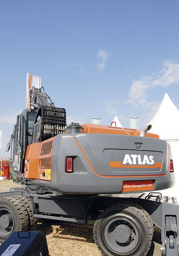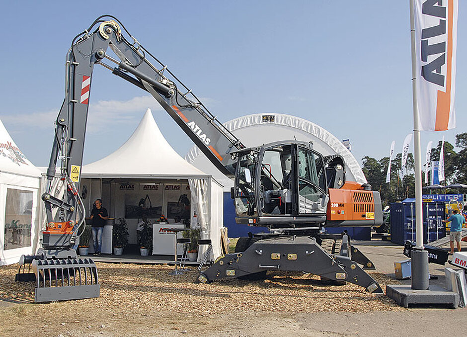 Komplett neu konstruiert biete der 200 MH mit seinem stärkeren Schwenkantrieb, bestehend aus großem Drehkranz und einem größeren Schwenkgetriebe, optimale Bedingungen für einen effektiven Umschlag. Das Schwenkverhalten sei ausgesprochen gut, und mit der zentrierten Positionierung des Turms auf dem stabilen Unterwagen sowie der großen Abstützweite und verbesserten Abstützkinematik werde eine gleichmäßige Lastverteilung erreicht. Über 360° rundum erreicht der 200 MH abgestützt je nach Ausladung und Höhe immer die gleichen Tragkräfte. Der Zylinderschutz der neuen größeren Abstützzylinder ist deutlich verstärkt worden. Angeboten werden für ein individuell konfektioniertes Umschlaggerät unterschiedlichste Armkombinationen. Unter anderem ein um 0,5 m kürzeren Knickarm, der eine enorme Stabilität im Arbeitsverhalten bewirkt.