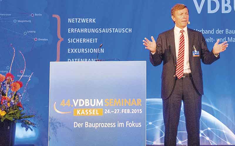 Natürlich war auf dem VDBUM-Großseminar auch die Entwicklung der Emissionsgesetzgebung hinsichtlich neuer Motoren- und Antriebstechnologien genauso ein Thema wie die Nachrüstung von Rußpartikelfiltern oder der Einsatz von RFID im Bauprozess und die Entwicklung eines Telematikdatenstandards für Baumaschinen und deren Anwendungsmöglichkeiten. Darüber hinaus kündigte der VDBUM an, auch in diesem Jahr wieder einen Baumaschinen-Erlebnistag als Imagekampagne für die gesamte Baubranche zu veranstalten. Geplant ist, so Vorstandsmitglied und Geschäftsführer Dieter Schnittjer, dass dieser Baumaschinen-Erlebnistag nach dem großen Erfolg im vergangenen Jahr ein fester Veranstaltungstermin im VDBUM-Jahresplan wird. »Immerhin rund1800 Schülerinnen und Schüler sowie 61 Firmen haben sich 2014 am Baumaschinen-Erlebnistag beteiligt«, sagte Schnittjer.