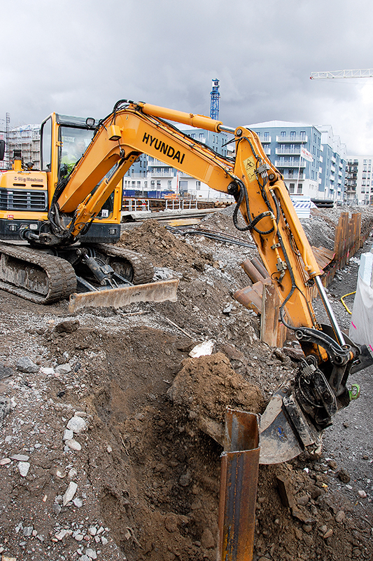 Neben der Präsentation der OQ-Technologie stand in Sollentuna die Vorstellung der neuen hydraulischen Anbauwerkzeuge mit im Mittelpunkt. Zu denen gehören neben dem bereits Anfang letzten Jahres vorgestellten Sieblöffel (sechs Modelle von 2 t bis 33 t) jetzt auch Anbauverdichter, Multi- und Sortiergreifer. Die Anbauverdichter werden in vier Größen für Bagger von 2 t bis 30 t angeboten. Wichtige Merkmale bei den Anbauverdichtern sind die exzentrische Anordnung der Aufnahme, eine optimierte Verteilung der Verdichtungskraft sowie eine Druck- und Durchflussmengenkontrolle zur Überlastsicherung.
