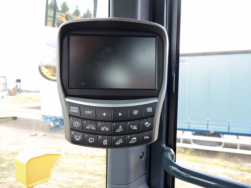 Ein kapazitives 7"-Touchscreendisplay informiert über ausgewählte Maschinenparameter, den gewählten Arbeitsmodus, Kraftstoffverbrauch und signalisiert Fehlerzustände. Zusätzlich hat der Fahrer ein übersichtliches Armaturenbrett im direkten Blickfeld. Hier werden Geschwindigkeit, Drehzahl, Verbrauch und andere Werte auf hinterleuchteten Skalen visualisiert.
