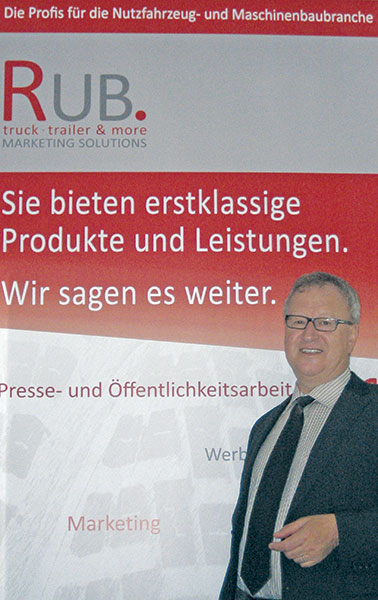 RUB unterstützt bei der diesjährigen Bauma beispielsweise vier Unternehmen. Konzeption und inhaltliche Gestaltung, einschließlich der Vorbereitungsmaßnahmen, wurden von der Ulmer Agentur erarbeitet. »Jetzt ist wichtig, dass die potenziellen Kunden unserer Klienten über deren Leistungen informiert werden. Hier setzen wir auf klassische Pressearbeit sowie auf die Information über die elektronischen Medien. Schließlich müssen wir einen internationalen Markt erreichen und unsere Kunden im harten Wettbewerbsumfeld unterstützen«, beschreibt Riesenegger die aktuelle Projektarbeit.