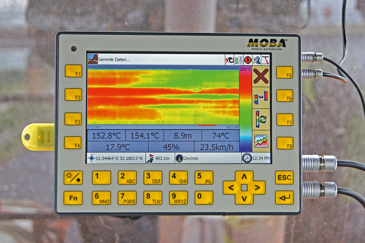 Eine flächendeckende Verdichtungskontrolle (FDVK) wie das MCA-3000-System von MOBA kann wertvolle Infos bieten. Es zeigt dem Fahrer die Temperatur, die Zahl der Überfahrten und die Steifigkeit des Materials an. Dafür wird der Verdichtungsfortschritt gemessen, angezeigt und festgehalten, anhand dessen der Fahrer in Echtzeit sieht, ob bei der aktuellen Überfahrt noch eine Verdichtung erzielt wird. Auch das von MOBA Pave-IR erfasste Temperaturprofil kann eingebunden werden.