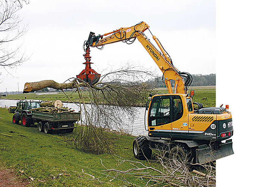 Weitere Besonderheiten der Mäh-Mobilbagger sind die großvolumigen Supersingle-Reifen mit 600 oder 700 mm Breite für besonders geringen Bodendruck und für minimale Beanspruchung der oft in Ufernähe sehr weichen und wenig tragfähigen Böden.HBN rüstet die Bagger zusätzlich mit einer am Motor angeflanschten Zahnrad-Konstantpumpe aus, die das Mähwerk mit Öldruck versorgt. Somit arbeitet das Mähwerk bei jeder gewählten Bagger-Leistungsstufe immer gleichmäßig. Als flexible Ausrüstung haben sich der 4 900-mm-Verstellausleger in Kombination mit dem 2 500-mm-Stiel erwiesen. An ihn können Stielverlängerungen von 2 000 mm und mehr angeschlossen werden, um den Aktionsradius des Baggers zu vergrößern.