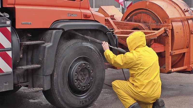 Elaskon betont besonders eine Unterscheidung zwischen Neu- und Gebrauchtmaschine. Je früher man mit der Vorsorge beginne, desto aussichtsreicher sei die Langzeitwirkung. Jede Maschine, die von den Service-Teams von Elaskon konserviert wird, erhält einen Pflegepass in dem die Produktanwendung pro Baugruppe dokumentiert wird. Auf einem Siegel im Fahrzeug wird das Pflegeintervall angezeigt, da ein Korrosionsschutz temporär ist und beobachtet bzw. überarbeitet werden muss.Nach Beauftragung wird ein geeigneter Termin mit dem Kunden so besprochen, dass die Fahrzeuge für möglichst kurze Zeit aus dem laufenden Betrieb genommen werden. Das Service-Team von Elaskon übernimmt nach Absprache auch die Vorreinigung des Fahrzeuges, deren Bedeutung nicht außer Acht gelassen werden sollte. Für die wirksame und haftende Versiegelung eines Fahrzeugs ist die gründliche Reinigung eine Grundvoraussetzung. Zu schützende Teile werden abgeklebt, anschließend wird appliziert.