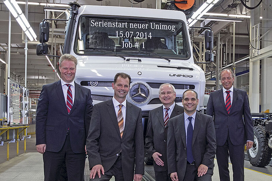 Der erste Vertreter der hochgeländegängigen Unimog-Reihe, ein arktisweiß lackierter U 5023 4x4, verließ am 15. Juli die Fertigungslinie; begleitet vom Applaus der Belegschaft sowie zahlreicher Gäste aus Politik und Wirtschaft. Nach dem neuen Unimog-Geräteträger und dem neuen Econic ist dies für Mercedes-Benz Special Trucks der dritte Produktionsstart innerhalb eines Jahres – und setzt zugleich den Schlusspunkt unter die Euro VI-Offensive bei den Wörther Sonderfahrzeugen. Yaris Pürsün, Leiter Mercedes-Benz Special Trucks, ist begeistert: »Die neuen hochgeländegängigen Unimog setzen Maßstäbe im Off-Road-Bereich. Sie überzeugen dank ihrer Fähigkeit, jedes Gelände zu bezwingen und jede Herausforderung zu meistern – ob bei der Waldbrandbekämpfung, im Hochwassergebiet oder im Tagebau. Der Unimog ist ein Alleskönner, wir konnten seine Eigenschaften trotz der großen Herausforderungen, die Euro VI mitbringt, weiter ausbauen. Das ist eine wirklich tolle Leistung.«