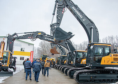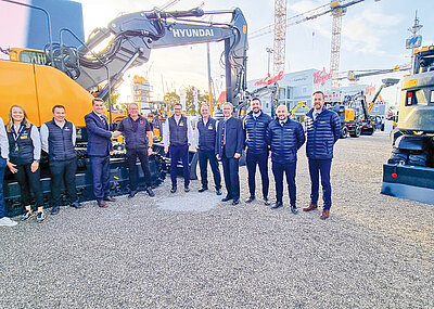 Kürzlich durfte Mörtlbauer ein umfassendes Maschinenpaket an seinen langjährigen Kunden Berger Bau übergeben: Vier neue Hyundai-»HL960A«-Radlader, zwei Hyundai-Kettenbagger »HX145ALCR« sowie drei SkanCraft-Hydraulikhämmer erweitern ab sofort den Maschinenpark des Bauunternehmens.