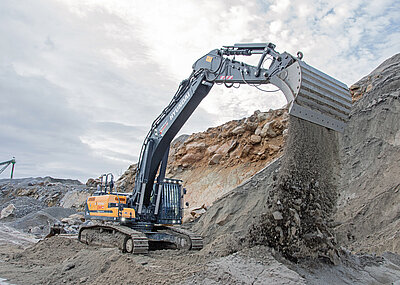 Der Hyundai »HL960A« überzeugt mit einem kraftvollen Sechszylinderdieselmotor und bringt 251 PS mit sich. Aufgrund innovativer Abgasnachbehandlung arbeitet er laut Aussage des Unternehmens leistungsstark und umweltfreundlich zugleich. Ein ZF-Getriebe sorgt für eine effiziente Kraftübertragung – ideale Voraussetzungen für den schweren Baustellenbetrieb. Mit einem Betriebsgewicht von 19,4 t, einem Schaufelvolumen von 3,6 m3 und einer Kipplast von bis zu 14,5 t ist der »HL960A« laut Mörtlbauer wie gemacht für anspruchsvolle Ladeeinsätze. Die Maschinen sind zudem mit einem Präzisionswiegesystem ausgestattet, das eine exakte Zielverwiegung ermöglicht – ein laut Unternehmen klarer Vorteil für effizientes Arbeiten. In puncto Komfort bietet die großzügige Kabine modernste Arbeitsbedingungen: Ein besonders niedriger Geräuschpegel von nur 68 dB, ein beheizbarer Grammer-Fahrersitz sowie eine leistungsstarke Klimaautomatik sorgen für optimale Bedingungen – selbst bei langen Einsätzen. Ein 360°-Kamerasystem bietet zusätzliche Sicherheit durch volle Rundumsicht. Bedient werden die Radlader über ergonomische, elektrohydraulische Joysticks, die präzises und ermüdungsfreies Arbeiten ermöglichen.
