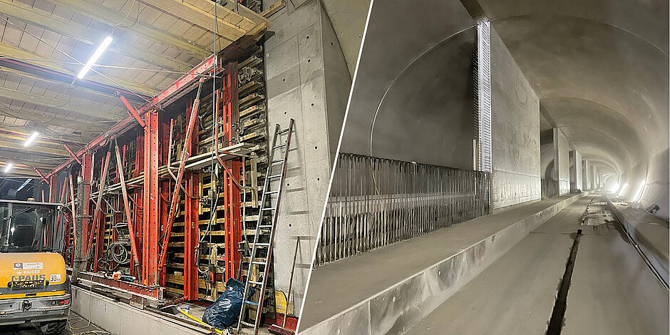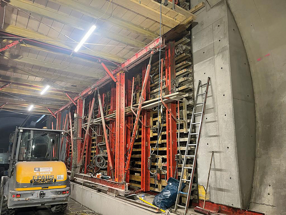 Im November 2022 begannen die Betonarbeiten an den Tunneltrennwänden in den Verbindungstunneln Innsbruck Ost und West. Durch das Vorlos wurden die Verbindungstunnel zyklisch vorgetrieben und anschließend mit einer Ortbetoninnenschale inklusive Abdichtungssystem ausgebaut. Die Trennwände haben eine Höhe von 7,5 m und Wandstärke von 50 cm. Sie werden unterhalb des bereits fertig gestellten Tunnelgewölbes betoniert.