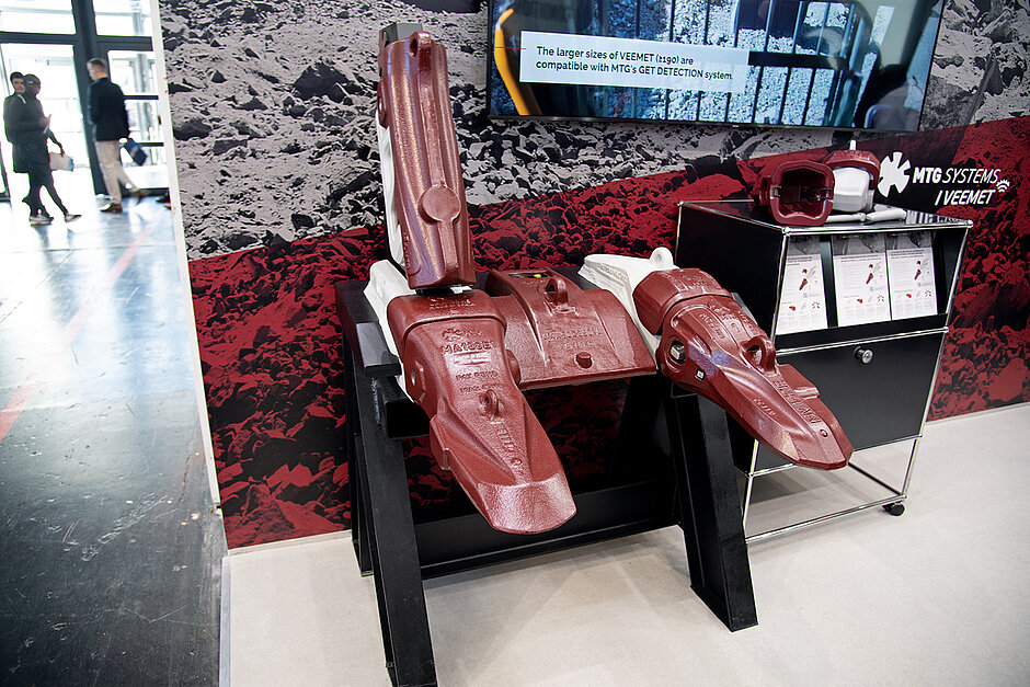 Beide neuen Systeme sollen besonders einfach und schnell montiert bzw. demontiert werden können. Neben den Zahnsystemen stellte MTG an seinem Messestand in München zudem ein eigens entwickeltes, digitales Überwachungssystem vor: Die »GET DETECTION« genannte Entwicklung soll in kürzester Zeit erkennen, wenn sich ein Verschleißteil (GET – Ground Engaging Tool) gelöst hat bzw. verloren wurde.