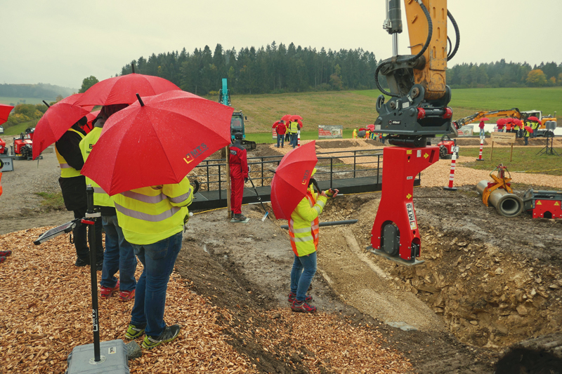 Unter welchen Voraussetzungen modellbasiertes Bauen für kleinere Bauunternehmen, Ingenieurbüros und Kommunen heute umsetzbar ist, stellte Schrode im letzten Jahr mit Deutschlands erster Modellbaustelle für BIM im K-VTB im Schwäbischen Erbstetten unter Beweis. Ausgangspunkt für die Idee der diesjährigen Leistungsschau war sein Wunsch, aktuelle Weiterentwicklungen aufzuzeigen, die aufgezeigten Möglichkeiten noch greifbarer zu machen und ebenso konkret wie praxistauglich auf das Parcours-Beispiel Straßenbau runterzubrechen.