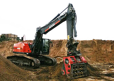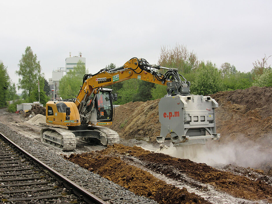 Bei der Automatisierung der anschließenden Kanalbauarbeiten kommen der epm-Bindemittelstreuer, der Schaufelseparator und der Anbauverdichter von MTS zum Zuge: »Mittels epm-Streuer kann ich die optimale Menge an Bindemittel dosiert auf den zu feuchten Boden geben und mit dem Separator homogenisieren, um später die Rohrleitungszone sauber mit der Doppelfußplatte vom MTS-Wechseladapterverdichter verdichten zu können«, so Sedlak. Das spare nicht nur Zeit, sondern fördere auch maßgeblich die Sicherheit der Baustelle, »denn nun ist kein Kollege mehr dem Bindemittel oder den Emissionen im Graben ausgesetzt, weil der Geräteführer einen Großteil der Bauarbeiten jetzt alleine abwickeln kann.«