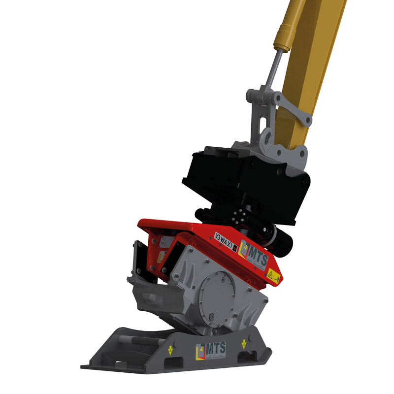 Die "Minis" von MTS rüsten auf - und zwar gleich in dreifacher Hinsicht: So bietet MTS ab sofort Modellvarianten mit Wechseladapter an, über den sich der Verdichter mit unterschiedlichen Werkzeugen ausstatten lässt: aktuell mit einem speziellen Verdichterfuß für kleine Leitungsgräben, einer für bindige Böden optimierten Schaffußplatte und mit drei Wechselplatten unterschiedlicher Breite für maximale Flexibilität im Einsatz. Weitere nützliche Spezialwerkzeuge sind bereits in Entwicklung. Dazu kommt das neue und speziell für Anbauverdichter konzipierte R3-Drehwerk, das ein exaktes und betriebssicheres Positionieren erlaubt - auch an schwer zugänglichen Stellen. Ebenfalls neu ist das Grundrahmengrundkonzept: Die komplett aus einem Guss und ohne Schweißtechnik gefertigte Grundplatte sowie die deutlich tiefer sitzende Erregereinheit machen sie noch kompakter als bisher.