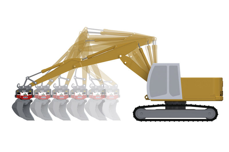Bei herkömmlichen Lösungen wird anbieterseitig lediglich ein Neigungssensor auf dem Tiltrotator montiert. Dadurch ergeben sich Positionen, bei denen die Messung sehr ungenau wird. Demgegenüber macht der MTS-Tiltrotator im Zusammenspiel mit dem MTS-NAVI eine nahtlose Einbindung möglich, da diese nicht nur fürs Rotieren, sondern auch fürs Tilten Drehwinkelsensoren verwendet und damit bisherige Einschränkungen hinsichtlich der möglichen Tiltrotator-Einsatzpositionen aus dem Weg räumt.
