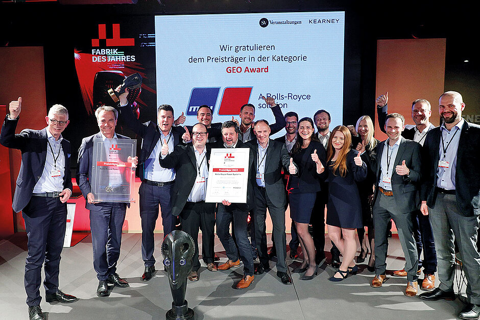 Der Geschäftsbereich Power Systems am Standort Friedrichshafen überzeugte vor allem durch seine Produktionsstrategie für mtu-Motoren und -Systeme. Sie ist darauf ausgerichtet, sich ständig an verändernde Rahmenbedingungen anzupassen. Die Prozesse werden fortlaufend verbessert, damit Rolls-Royce Power Systems wettbewerbsfähig bleibt. Marc Goldschmidt, Vice President Remanufacturing & Overhaul Technologies und Leiter des Bewerbungs-Teams bei Rolls-Royce Power Systems, sagt: »Es macht uns alle sehr stolz, dass wir bei unserer ersten Teilnahme auf Anhieb den GEO-Award erhalten haben. Es würdigt die sehr gute Arbeit und den Einsatz unserer Mitarbeiter in der gesamten Produktion und zeigt, dass wir uns mit unseren Prozessen und Ergebnissen im Vergleich mit anderen Unternehmen sehr gut behaupten konnten.« Die Produktionsstrategie beinhaltet neben dem Bereich Produktion unter anderem die Montage, Fertigung sowie Logistik und orientiert sich entlang unterschiedlicher Bereiche. Diese konzentrieren sich auf Themen wie Make or Buy, Fabrik der Zukunft durch Digitalisierung, stetige Prozessverbesserungen und Effizienzsteigerung, Standortentwicklung, Einkauf und Lieferketten, neue Produkte und Services sowie Nachhaltigkeit. Durch schlanke Prozesse und kurze Entscheidungswege kann schnell und unkompliziert auf Veränderungen reagiert werden. So ist das Unternehmen vor allem auch auf künftige Herausforderungen vorbereitet. d