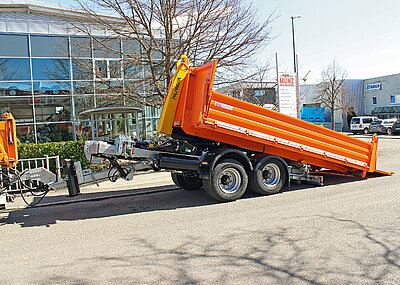Der Abrollkippanhänger mit Dreiseitenkipper- und Absenkfunktion