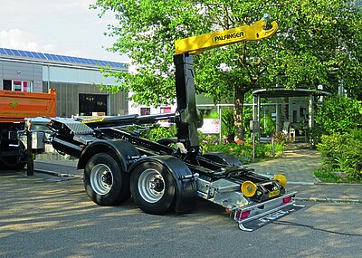 Der Abrollkippanhänger ist ab 3,5 Tonnen Gesamtgewicht erhältlich, bis zur großen Klasse von 19 Tonnen. Durch seine kompakte Bauweise ist er ein vielseitig einsetzbares Transportgerät, welches durch seine kompakte Bauform und niedrige Auffahrhöhe das Fahrzeug zu einer gelungenen Transportlösung macht. Ein ausziehbarer Beleuchtungskasten mit hoher Bodenfreiheit, die modulare Zugdeichsel mit hydraulischer Deichselverstellung - einsetzbar für unterschiedliche Zugfahrzeuge, runden in vollem Umfang die Vorteile der Hakenlift-Technologie ab. Außerdem kann er durch die Duo Hakenverstellung beide DIN Containerbehälter - Standartcontainer nach DIN 30722-1 als auch den Citycontainer nach 30722-3 aufnehmen. Bei der Ausstattung gibt es viele Varianten und Ausführungen, unter anderem wird eine Zusatzhydraulik Angeboten für Nebenverbraucher, somit können z.B. Container mit Bewässerungssystemen aufgezogen und auch angetrieben werden.