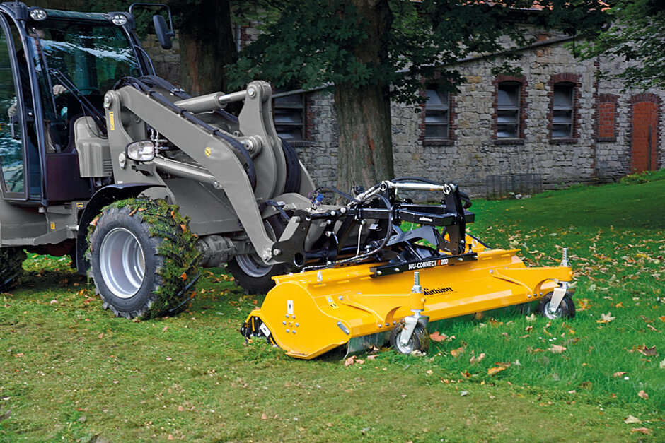 Passgenaue fahrzeugspezifische Anbauteile machen ein schnelles, werkzeugloses und spielfreies Ankoppeln in wenigen Sekunden möglich. Ein niedriger Koppelpunkt steht für eine gute Übersicht durch die tiefe Schwingenposition. Serienmäßig ist der MU-E Hydro Vario mechanisch seitenverschiebbar, eine hydraulische Seitenverschiebung ist ebenfalls erhältlich. §