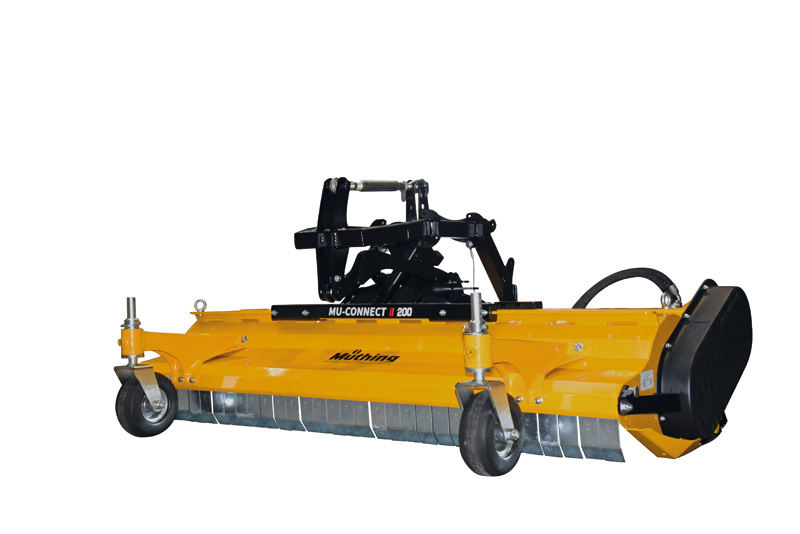 Die Laderaufnahme MU-Connect 200 ist für Müthing-Mulchgeräte der Baureihe MU-E Hydro Vario in den Arbeitsbreiten von 1,4 m bis 2 m verfügbar. Anbaumöglichkeiten sind an sämtliche Fahrzeugtypen gegeben: Gabelschuhe für Palettengabel, Euro-3-Aufnahme, Kat.-0-Kuppeldreieck, Schäffer (Aufnahme SWH oder KR), Weidemann (hydr. Verriegelung) und Kramer. Weitere Systeme macht Müthing auf Anfrage möglich.