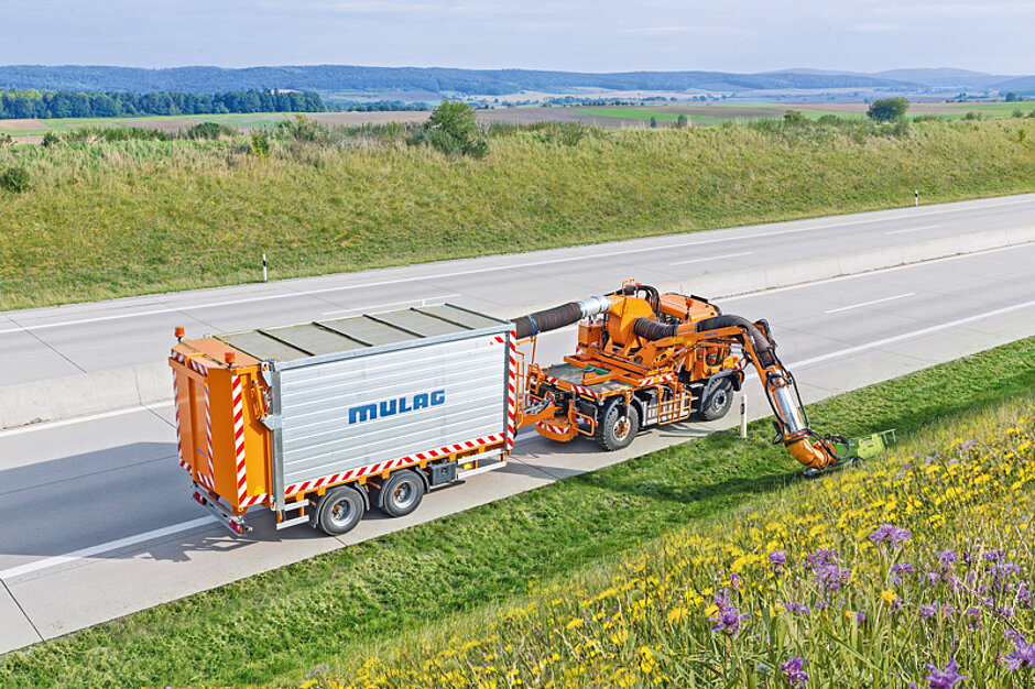 Die direkten Angriffsflächen des Schneidwerkes hat MULAG etwa um den Faktor 50 minimiert, eine stark angehobene Schnitthöhe soll zudem ökologisch schonenderes Mähen gewährleisten. Nebenbei entstehen durch das Aufnehmen der sonst als Dünger wirkenden Mahd über ein Radialgebläse in den Mähgutanhänger magere Grünflächen, die eine gute Grundlage für eine nachfolgende blütenreiche Vegetation bilden. Ebenso werden Lebewesen nicht durch liegengebliebenes Material abgedeckt. Der minimale Bodenkontakt des Grünpflegekopfes aufgrund neu konstruierter Tastrollen soll am Boden lebende Tiere schützen. t