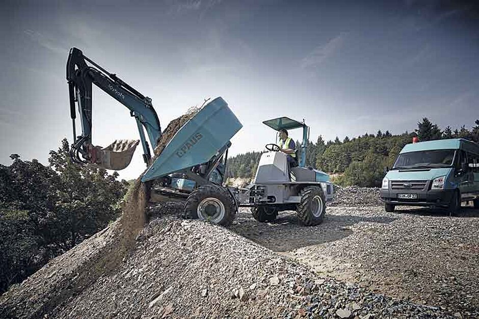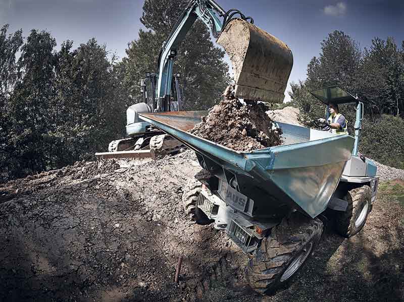 Mittlerweile kommt der Paus AKR 205 bei Pöllmann auf den unterschiedlichsten Baustellen zum Einsatz. »Gerade auf innerstädtischen Baustellen mit viel Verkehr und Fußgängern ist der AKR 205 für uns unersetzlich«, sagt Pöllmann. »Der Muldeninhalt von 1,9 m³ bis 3,5 m³ erspart uns auf den Baustellen viel Zeit. Wir konnten die Umlaufzeit, bei gleicher Lademenge eines 7,5-t-Lkw, mit dem Paus-Muldenkipper halbieren«, ergänzt der Firmeninhaber.Der hydrostatische Fahrantrieb sorgt für material- und untergrundschonende Fahrmanöver auf allen Streckenverhältnissen. Zudem gewährleistet das von Paus entwickelte Downhill-Speed-Control-System, dass die Muldenkipper die sichere Geschwindigkeit bei Talfahrt nicht überschreiten: ein deutlicher Gewinn an Betriebssicherheit und eine große Entlastung für den Antrieb als auch für den Fahrer.