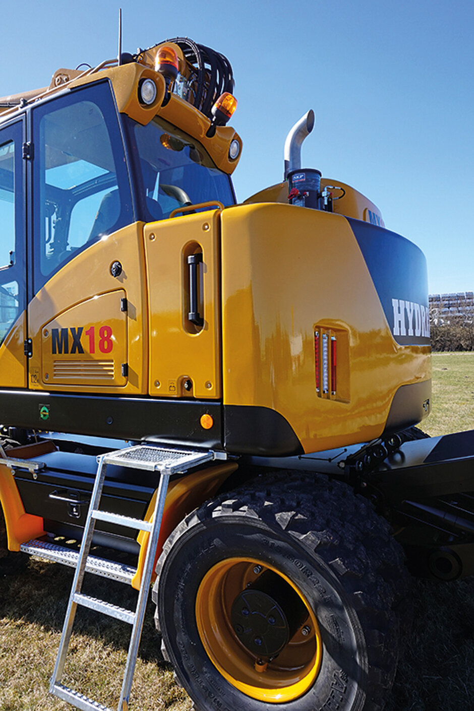 Auch der zusätzliche größere Monitor für die Kameras zählt jetzt zur Standardausstattung. Die Menüführung im Hauptmonitor wurde optimiert, die speicherbaren Anbaugeräte können jetzt mit individuellen Namen hinterlegt werden, und zahlreiche Maschineneinstellungen verfügen nun über eine Memory-Funktion. Die Roto-Tilt-Funktionen können durch den Service auf Kundenwünsche eingestellt werden. Hydrema bietet werkseitig jetzt zudem die Schnellwechselsysteme von Engcon, Lehnhoff und OilQuick an.