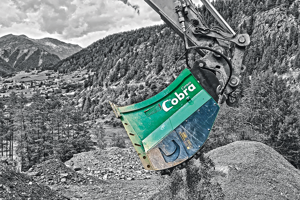Im nächsten Schritt ist der Einsatz eines Schaufelseparators gefragt, der als multifunktionales Anbaugerät für Trägergeräte wie Bagger, Radlader und Teleskoplader konzipiert ist. Je nach Schaufeltyp – Baumaschinen mit hochverschleißfesten Polyurethansternen oder Cobra mit unterschiedlichen Wellen aus finnischem Stahl – können die Anbaugeräte für Absiebungen in verschiedenen Korngrößen, das Zerkleinern, Mischen oder auch Belüften vielseitig verwendet werden. Das geringe Eigengewicht, ein großes Schaufelvolumen und hohe Leistung sollen den Einsatz einfach und unkompliziert werden lassen.