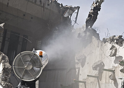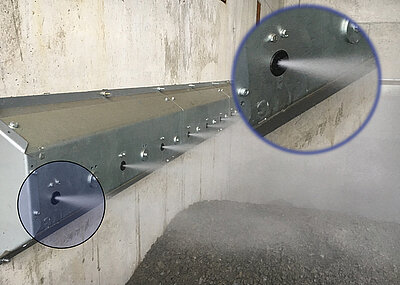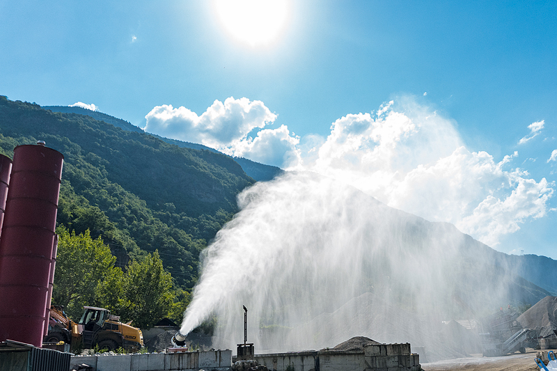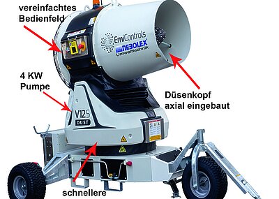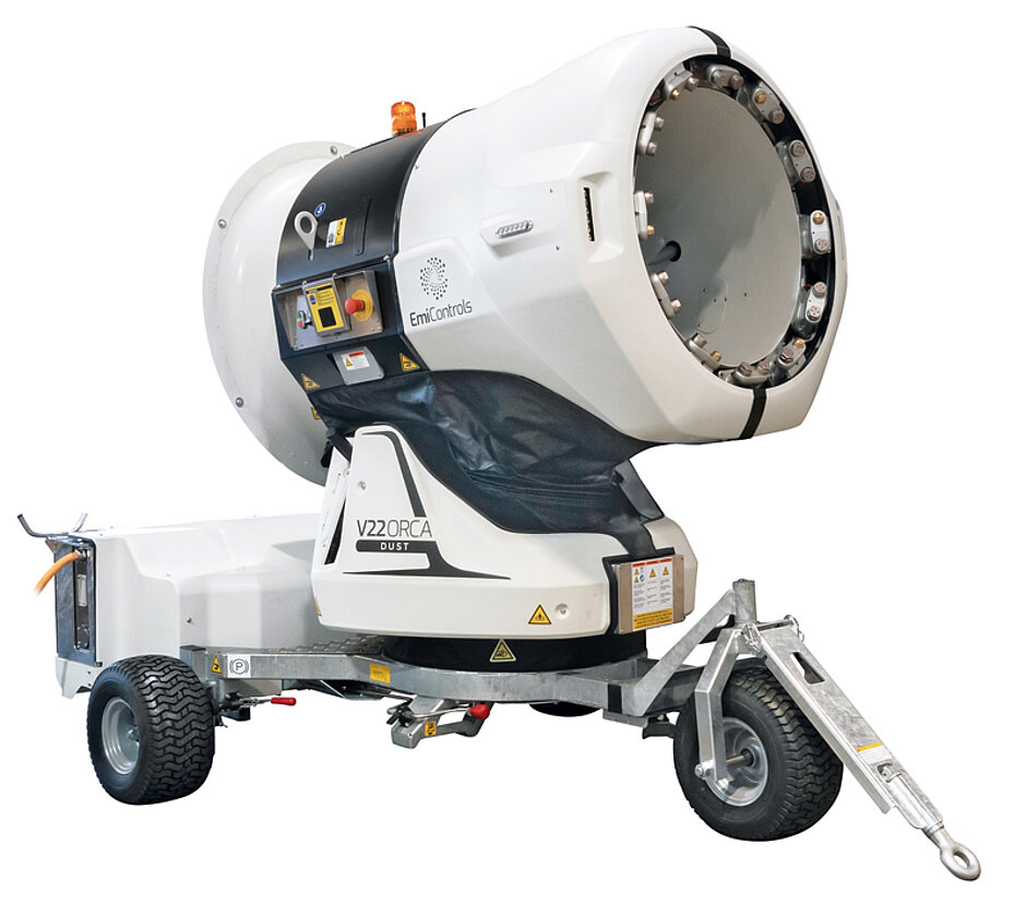 Das noch junge Modell V22 Orca wurde speziell für »kalte Länder« entwickelt. Wenn aufgrund eisiger Temperaturen eine Staubbindung mit Wassernebel nicht mehr möglich ist, erzeugt das Modell V22 Orca kurzerhand Schnee. Gesteuert über einen eingebauten Sensor schaltet die Maschine bei einer Temperatur von + 1 °C bis 0 °C auf »Schneebetrieb« um.