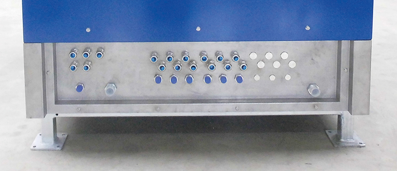 Das festinstallierte Vernebelungssystem wird direkt an der platziert. In die Sprühnebelleisten sind die Düsen integriert, um so vor Beschädigungen geschützt zu sein. Beim Nebolex-System wird das Wasser in selbstansaugenden Sprühnebelköpfen in feine Tröpfchen zerrissen. Ein Nebelstrahl kann direkt an die entsprechenden Stellen gelenkt werden. Alternativ kann ebenso eine horizontale oder vertikale Nebelwand erzeugt werden. Beide Varianten lassen sich miteinander verbinden.