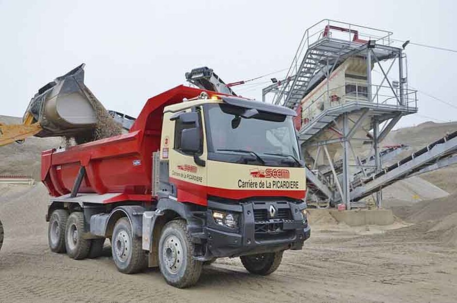 In Frankreich wählte Groupe Martel, ein Spezialist im Hoch- und Tiefbau, den Renault Trucks K. Seine Robustheit überzeugte die Generaldirektoren Fabrice Martel und Lionel Martel, einen K 8x4 für einen besonders extremen Einsatz zu wählen. »Dieses Fahrzeug ersetzt einen Muldenkipper«, erklären sie. »In den Steinbrüchen ist der Boden sehr hart, und mit dem großen Wendekreis des Muldenkippers brachen uns oft die Achsen. Mit dem Renault Trucks K laden wir genauso viel wie vorher und es kostet uns nur die Hälfte! Er entspricht absolut den spezifischen Herausforderungen unserer Branche.« Dieser K ist das erste Fahrzeug der Marke, das in die Flotte aufgenommen wurde. Seither wurden zwei weitere in der Version als Baustellenfahrzeug bestellt.