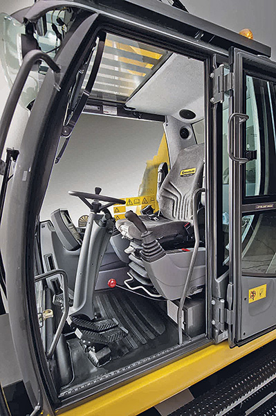 Die zweckmäßige Anordnung der Steuerelemente in der Kabine ist auf eine intuitive und komfortable Bedienung der Maschine ausgerichtet. Das neue Armaturenbrett bietet einen LCD-Monitor und einen Bildschirm für die Rückfahrkamera.