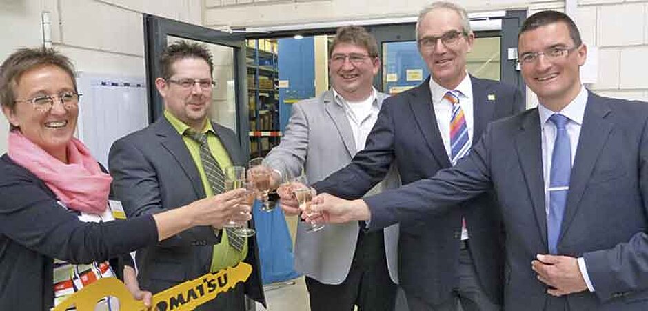 Zur Einweihungsfeier konnte Geschäftsführer Thomas Schlüter auch Marco Maschke, Leiter des deutschen Büros von Komatsu Europe, begrüßen.