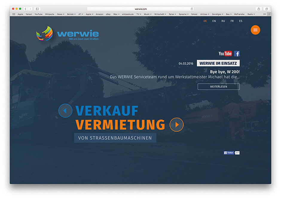 Nach viermonatiger Entwicklungszeit freuen wir uns, unseren Kunden nun eine Website bieten zu können, die alle ›Devices‹ abdeckt. Ganz gleich ob Smartphone, Tablet oder kleine und große Desktop-Bildschirmgrößen: Unser Bestand an gebrauchten Straßenbaumaschinen ist nun jederzeit und mit jedem Endgerät komfortabel abrufbar«, freut sich Jan Werwie, Head of Sales. In Kombination mit gesteigerten Aktivitäten auf Facebook und youtube sehe man sich jetzt online und in den sozialen Medien »wirklich gut aufgestellt.«