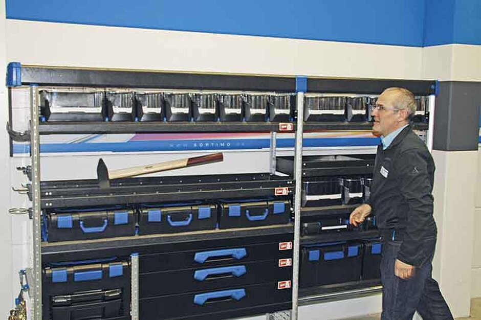 Sortimo HD steht für Heavy Duty und ist eine passende Fahrzeugeinrichtung, wenn es um extreme Belastungen und sehr hochwertige Fahrzeugeinrichtungen geht. Dank des hohen Anteils an Composite-Material ist sie stoß- und kratzfest, korrosionsbeständig und resistent gegen Säuren, Laugen, Benzin und andere chemische Mittel. Die HD-Regal- und Fachböden sind ausgelegt für eine Ladung bis zu 120 kg. Die Frontklappen ermöglichen es, schwere Maschinen und Werkzeuge sicher und platzsparend in den Regal- und Fachböden zu verstauen. Die Schubladen können bis zu 90 kg aufnehmen. Darüber hinaus gibt es eine Großraumschublade, die durch ihre Bauweise sehr schwere Gerätschaften und unhandliche Materialien verstaut. Sortimo setzt die Jumbo Unit unter anderem als Unterbodenlösung ein.HD-Zubehör soll die Fahrzeugeinrichtung einmalig machen. Mit dem Schwerlasthaken beispielsweise können Schläuche, Ketten, Kabel, Schlingen oder ähnliche Materialien transportiert werden. Weiteres belastbares Zubehör, wie eine schwere Werkbank, der Rohrzangenhalter oder die Winkelschleiferhalterung, runden das Angebot ab. Auch Sortimo HD ist ab März in allen Sortimo-Niederlassungen und -Stationen erhältlich. tü/ma
