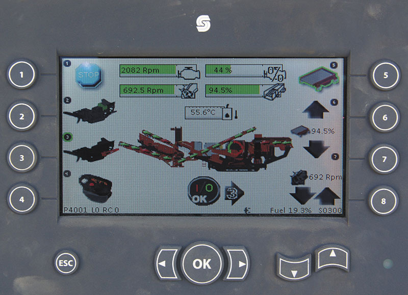 So soll die Kombination aus Brecher-Direktantrieb und Sekundärhydraulik nicht nur eine hohe Leistungsausbeute der installierten Cat-Motoren (QI441: 328 kW; QI341: 261 kW) garantieren. Im Falle einer Rotor-Blockade kuppelt die Nasskupplung aus, ohne dass die gesamte Peripherie wie Übergaben oder Austragsbänder zum Stillstand kommt. Entsprechend schnell kehrt die Anlage zur vollen Leistung zurück, wenn der Rotor bei freiem Brecher wieder automatisch einkuppelt.