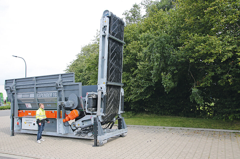 Warrink verweist auf einen besonderen Vorteil des Dosierbunkers, der ihm und seinem Team besonders wichtig ist: »Der Energiebedarf fällt sehr gering aus.« Bei einem Gesamtgewicht von 8,4 t und einem Volumen von 10 m³ lasse sich unschwer erkennen, dass der Spender 10 flexible Mobilität mit Stärke und Robustheit kombiniere.