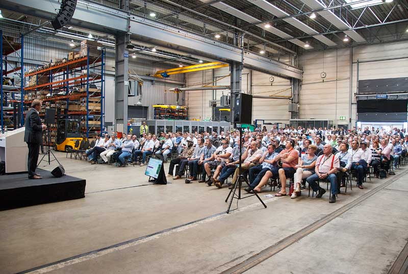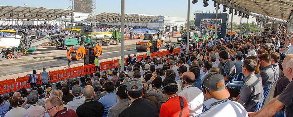 Bei den »Road Technology Days« konnten die rund 4 000 Besucher an zwei Tagen neben zahlreichen Fachvorträgen sowie Technologie-Ausstellungen unter anderem Live-Demonstrationen, Werksführungen und eine Maschinen-Ausstellung mit rund 70 Exponaten erleben. Festlicher Höhepunkt war ein Gala-Abend in der neuen 22 000 m² großen Versandhalle des Vögele-Stammwerks. »Der persönliche und fachliche Austausch mit unseren internationalen Kunden ist uns sehr wichtig«, sagte Domenic Ruccolo. »Nur so können wir in einer Branche mit so vielfältigen, hoch diversifizierten Anforderungen passgenaue länder- und kundenspezifische Lösungen entwickeln. Die ›Road Technology Days‹ sind deshalb eine ideale Wissens- und Austausch-Plattform.«