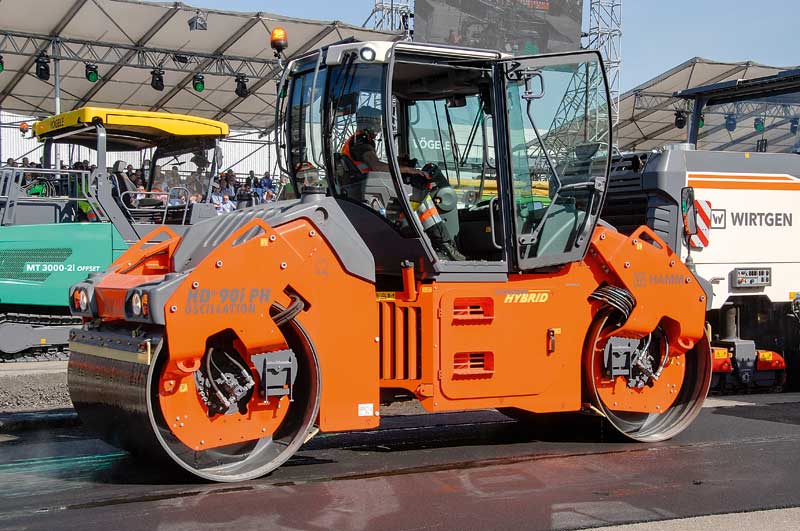 Bei den Fachvorträgen und in den Technologie-Ausstellungen erhielten die Besucher zudem einen Ausblick auf aktuelle und künftige Entwicklungen im Straßenbau. So zeigte Wirtgen präzise Nivellier-, wirtschaftliche Schneid- und moderne Recyclingtechnologien. Vögele präsentierte das softwarebasierte Prozessmanagementsystem »Witos Paving«. Die Telematiklösung vernetzt unter anderem Straßenfertiger, Mischanlage und Lkw und ermöglicht so eine exakt koordinierte Mischgutzufuhr. Alle beteiligten Akteure können auf sämtliche Daten wie Betriebsinformationen der Maschinen oder Be- und Entladezeitpunkte der Lkw in Echtzeit zugreifen und die Abläufe so genau aufeinander abstimmen. Hamm zeigte intelligente Lösungen für die Verdichtung, unter anderem das intuitive Bedienkonzept Easy Drive und das Prinzip der Oszillation. Dabei werden tangentiale statt vertikale Schubkräfte in das zu verdichtende Material geleitet. Die Bandage bleibt in ständigem Bodenkontakt und ermöglicht so eine besonderes schnelle Verdichtung.