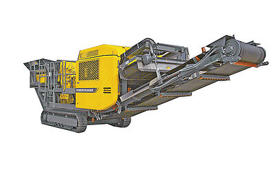Der ausgestellte Lokotrack LT120 ist eine robuste Anlage der 60-Tonnen-Klasse, die alle Kundenanforderungen bezüglich Durchsatz und Gesamtwirtschaftlichkeit beim Vorbrechen in Steinbrüchen erfüllt. Der große Brechereinlauf mit 1200 x 870 mm Einlauföffnung nimmt auch große Gesteinsbrocken auf. Das verwandte Modell, der LT120E, ist für den vollelektrischen Betrieb mit einer externen Stromversorgung gerüstet.