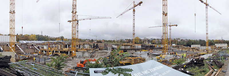 In einer auf acht Monate angesetzten Rohbauphase müssen alle Gewerke reibungslos ineinandergreifen. »Mit dem straffen Zeitplan sind höchste logistische Anforderungen auf der Baustelle verbunden, besonders was die Platzverhältnisse und die Andienung betrifft«, erläutert Bauleiter Christian Hoffmann, Ed. Züblin – Direktion Stuttgart, Bereich Ingenieur- und Infrastrukturbau. »Da praktisch auf dem gesamten Baufeld mit Hochdruck gleichzeitig gearbeitet wird, steht nur eine sehr begrenzte Lagerfläche zur Verfügung. Zudem ist eine Anlieferung von Baumaterialien nur über die Stresemannstraße möglich.« Bei allem, was auf der Baustelle gebraucht wird, zählt das Motto »die richtige Menge zur richtigen Zeit am richtigen Ort«.