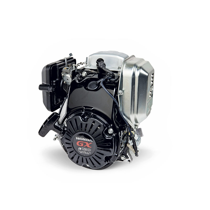 Der Hubraum des GXR120 ist auf 121 cm³ vergrößert, was eine Motorleistung bis zu 2,6 kW ermöglicht. Wie der GX100 wurde auch der GXR120 mit einer OHC-Anordnung entwickelt, also mit obenliegender Nockenwelle, die im Zylinderkopf oberhalb des Verbrennungsraums angeordnet ist. Die obenliegende Nockenwelle wird durch einen wartungsfreien geräuscharmen Steuerriemen angetrieben, was einen positiven Effekt auf Baugröße und Gewicht mit sich bringt. Der neu entwickelte Auspuff konnte um 22 mm verkleinert werden, der GXR120 ist somit noch kompakter als der GX100. Der Auspuff in Verbindung mit der OHC-Anordnung reduziert das Betriebsgeräusch noch weiter, was zur erhöhten Bedienerfreundlichkeit beiträgt. Ein spezieller Grauguss-Zylinder und eine zweifach kugelgelagerte Kurbelwelle aus Hartstahl stehen für eine zuverlässige Langzeitnutzung.