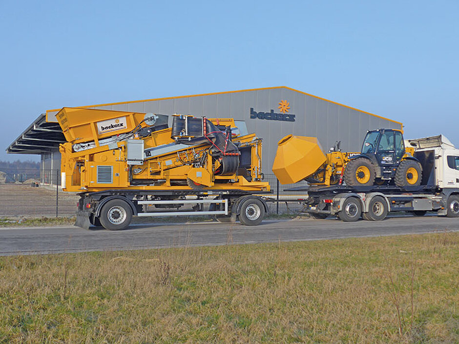 Auf dem Gelände können die Sieb- und Mischmaschinen mit unterschiedlichen Materialien getestet und demonstriert werden. Neben den stationären Sternsiebdecks gehören hakenmobile, rad- und raupenmobile 2- und 3-Fraktionen-Sternsiebe zum aktuellen Backers-Portfolio. Neben der Standardbreite von 1,2 m kommt auch das 1,7 m breite Siebdeck zunehmend zum Einsatz.
