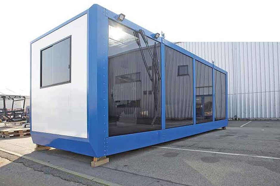 Das contiflex-System stellt einen Multifunktionscontainer mit vollständig modularem Aufbau dar. Durch die Modulbauweise lassen sich beliebig viele Einheiten kombinieren, beispielsweise eine Steuerkabine mit Büro, Trafohaus oder Schaltschrankraum-Modulen, was den Einsatz in unterschiedlichsten Bereichen ermöglicht. Michael Schätzle, für contiflex zuständiger Business Development Manager, erklärt: »Der neue Multifunktionscontainer contiflex kann im Kranbereich beispielsweise als Elektro- oder Maschinenhaus und als Steuerkabine zum Einsatz kommen.« Um die hohe Flexibilität wirtschaftlich realisieren zu können, wurden Rastermaße definiert, die die Grundlage für den modularen Aufbau bilden. Diese Rastermaße stellen die einzige Begrenzung der Außendimensionen dar. Neben einfachen, geschlossenen Wandelementen wurden Elemente entwickelt, die je nach Anforderung Türen, Fenster, sonstige Glaselemente, Notausstiege und Anschlagmöglichkeiten für Klima- und Heizgeräte enthalten. Der Außenaufbau – Dach, Boden, Seitenwand, Rahmen – besteht aus Segmenten, die in ihrer Kontur identisch und damit ebenfalls austauschbar sind. Dank modularem Aufbau lässt sich die Kabine in allen möglichen Oberflächenbehandlungen wie Pulverbeschichtung, KTL-Beschichtung, Feuerverzinken oder auch Nasslackieren veredeln.