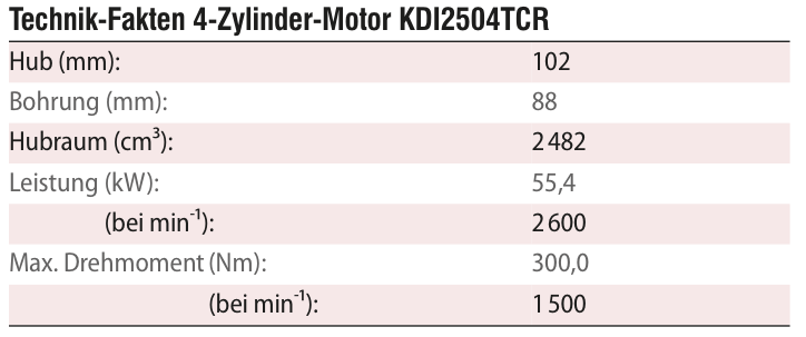 Dass bei den neuen Motoren kein Abgasnachbehandlungssystem notwendig wird und die KDI-Motoren trotz ansprechender Leistungs- und Drehmomentwerte über kleinere Abmessungen verfügen, soll für alle OEM entsprechende Vorteile beim Einbau mit sich bringen. Aktuelle Motoren können bei gleicher Leistung durch Motoren mit kleinerem Hubraum abgelöst werden. Da kein Regenerationsprozess erforderlich ist, sollen sowohl ein niedrigerer Verbrauch als auch längere Wartungsintervalle ermöglicht werden. Eine saubere Verbrennung mittels eines Common-Rail-Hochdruckeinspritzsystems (2 000 bar) – ausgestattet mit AGR-Ventil (elektronisch gesteuert) zum Rückführen der korrekten Abgasmenge, die durch einen Wärmetauscher mit Kühlwasser gekühlt wird – erlaubt die Einhaltung der Abgasnormen ohne Abgasnachbehandlungssysteme. Die neuen Motoren sollen besonders durch Kompaktheit, höhere Leistung, geringere Vibrationen und einen reduzierten Schallpegel punkten.Verbrauchssenkung