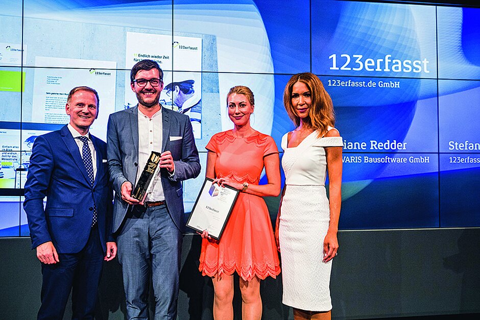 123erfasst.de sieht sich als Marktführer im Bereich mobiles Baustellen-Management und bietet über eine App sowie Anbindungen zu Office-Lösungen die Möglichkeit zur ortsunabhängigen Zeiterfassung und Projektdokumentation. »Mit unserem Know-how und unseren Produkten gelten wir als Vorreiter in der Branche. Diese Rolle wollten wir mit einem innovativen, wettbewerbsfähigen Design unterstreichen«, sagt Geschäftsführer Stefan Neumann, der maßgeblich an der Umsetzung des neuen Markenauftritts beteiligt war. Zum vierten Mal wurden Unternehmen, Agenturen, Dienstleister und Organisationen beim »German Brand Award« im Rahmen einer Gala in Berlin geehrt. Der Rat für Formgebung und das German Brand Institute zeichnen jährlich erfolgreiche Marken sowie Unternehmen für eine konsequente Markenführung und nachhaltige Markenkommunikation aus. t